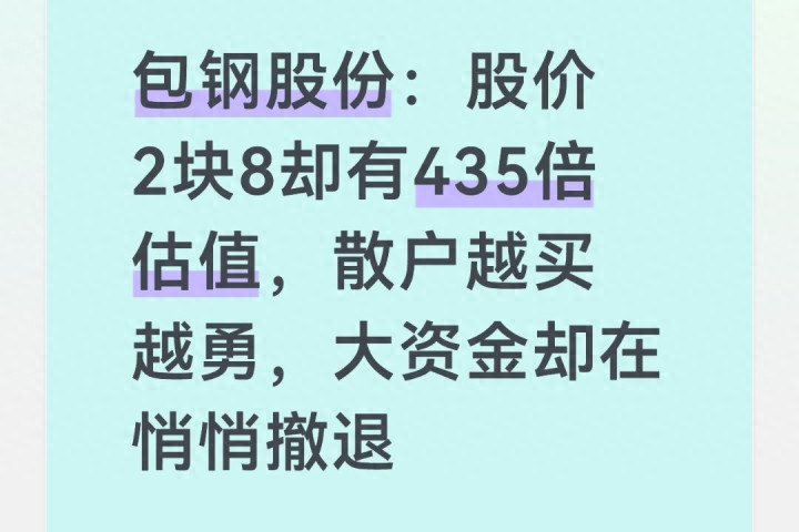 包钢股份本身没有问题,企业在正常发展,员工在正常工作,业务在正常推进,是一家踏踏实实做实业的公司。它只是不适合在估值偏高的时候,作为短期投机的目标。